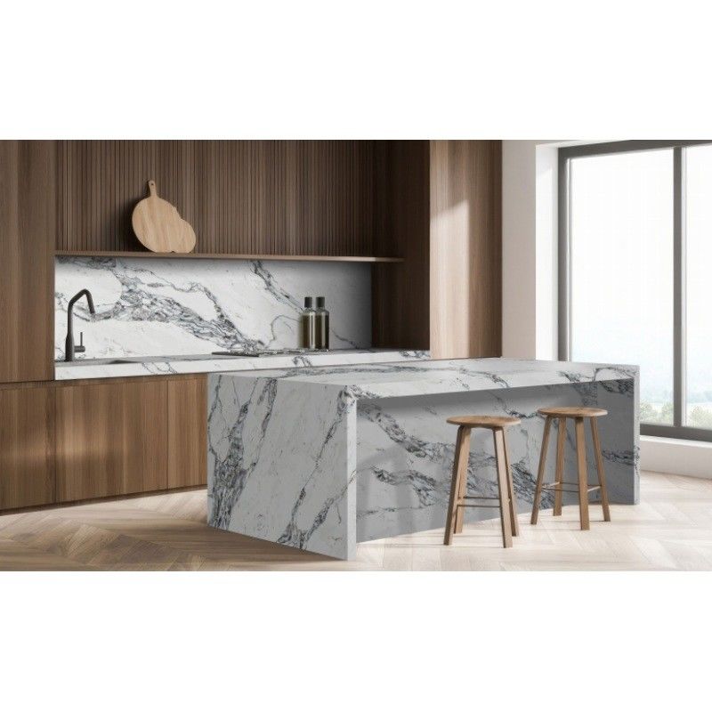 Bahan permukaan padat dari batu buatan dikombinasikan dengan resin dan aluminium hidroksida dalam proses khusus, yang melepaskan molekul air dalam kasus suhu dan panas tinggi,dan memiliki fungsi tahan api dan penyerapan panas.